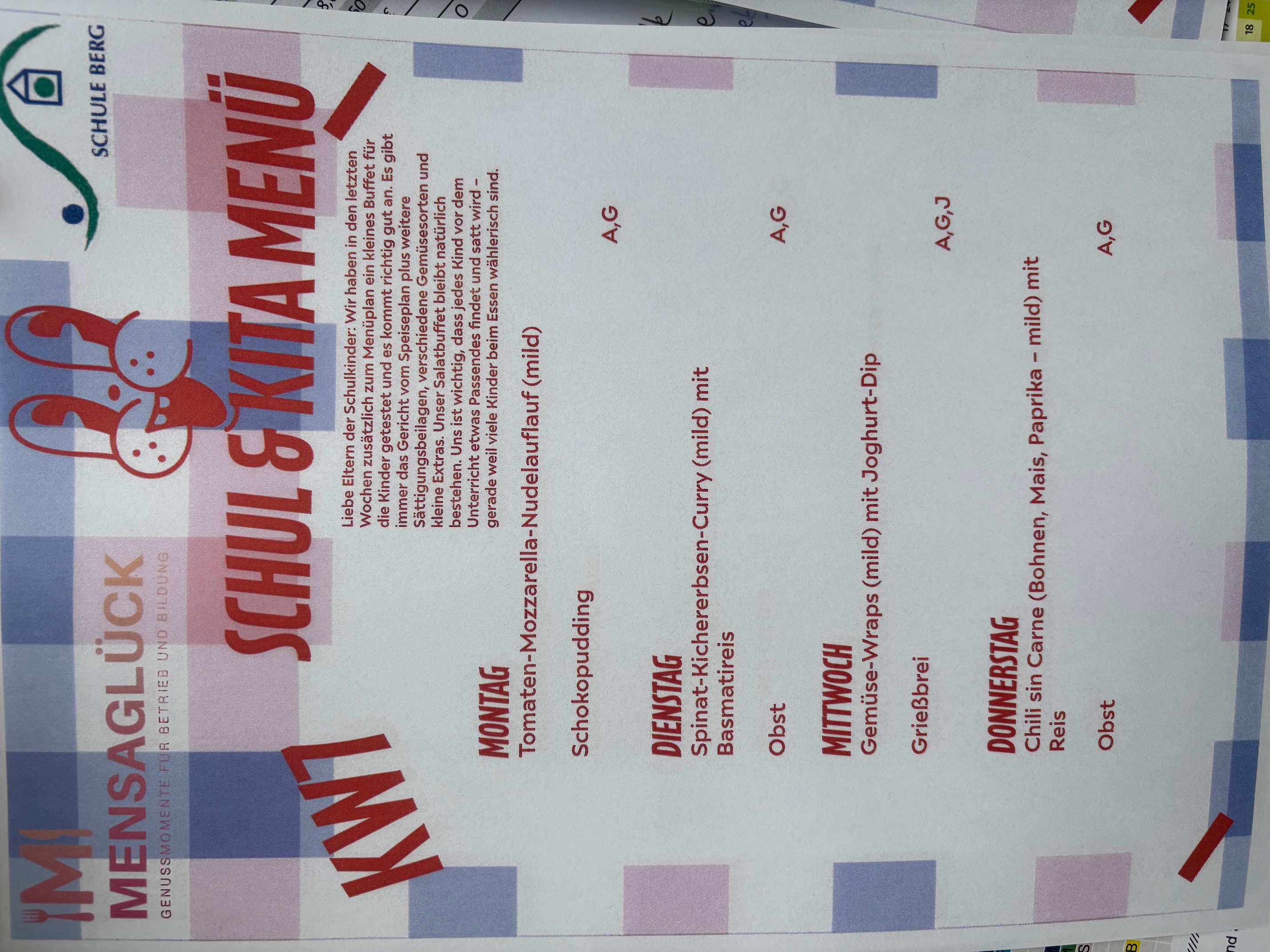 ⇒Liste der Allergene und Zusatzstoffe für die Speisepläne (Stand Juni 2025)